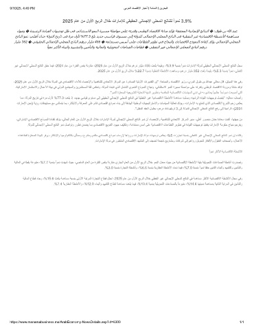 2025 مﺎﻋ نﻣ لوﻷا ﻊﺑرﻟا لﻼﺧ تارﺎﻣﻺﻟ ﻲﻘﯾﻘﺣﻟا ﻲﻟﺎﻣﺟﻹا ﻲﻠﺣﻣﻟا ﺞﺗﺎﻧﻠﻟ ًاوﻣﻧ 3.9%