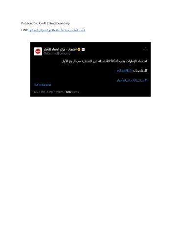 Publication: X – Al Etihad Economy Link: لولأا عبرلا يف ةيطفنلا ريغ ةطشنلأل %5.3 ومني تاراملإا داصتقا