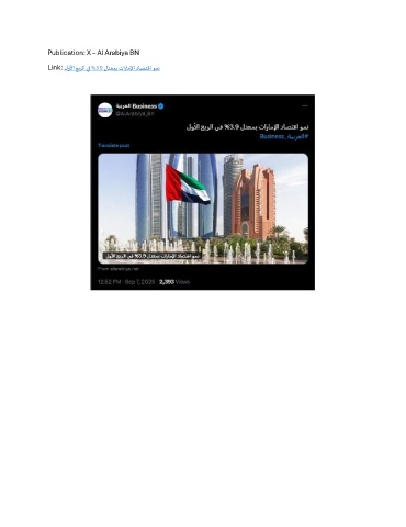 Publication: X – Al Arabiya BN Link: لولأا عبرلا يف %3.9 لدعمب تاراملإا داصتقا ومن