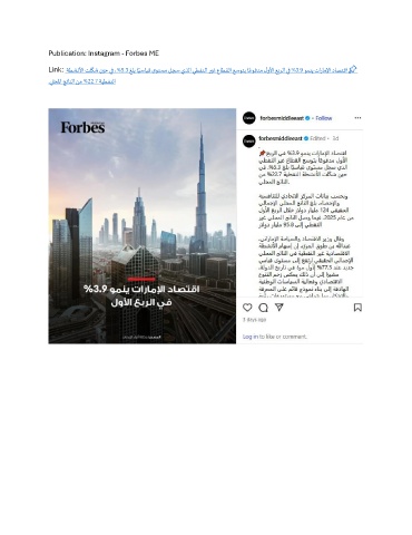 Publication: Instagram - Forbes ME ّ ً ً Link: ةطشنلأا تلكش نيح يف ،%5.3 غلب ايسايق ىوتسم لجس يذلا يطفنلا ريغ عاطقلا عسوتب اعوفدم لولأا عبرلا يف %3.9 ومني تاراملإا داصتقا .يلحلما جتانلا نم %22.7 ةيطفنلا