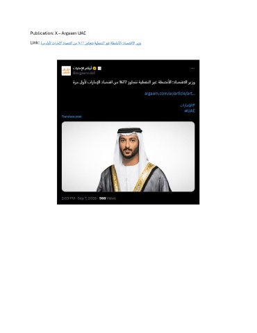 Publication: X – Argaam UAE Link: ةرم لولأ تاراملإا داصتقا نم %77 زواجتت ةيطفنلا ريغ ةطشنلأا :داصتقلاا ريزو