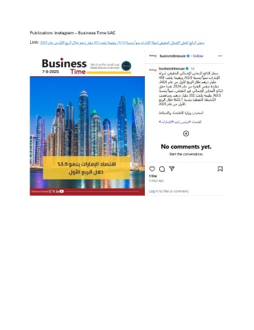 Publication: Instagram – Business Time UAE ً Link: 2025 ماع نم لولأا عبرلا للاخ مهرد رايلم 455 تغلب ةميقبو ،%3.9 ةبسنب اومن تاراملإا ةلودل يقيقحلا يلامجلإا يلحلما جتانلا لجس