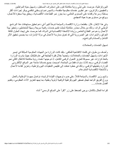 ةرازﻮﻟا تردﺎﺑ ﺚﯿﺣ ،2020 مﺎﻋ ﻲﻓ ﺔﺤﺋﺎﺠﻟا ةﺮﺘﻓ لﻼﺧ اﺪﯾﺪﺤﺗو ،تﻼﻣﺎﻌﻤﻟاو تﺎﻣﺪﺨﻟا ﻞﯿﮭﺴﺗو تاءاﺮﺟﻹا
