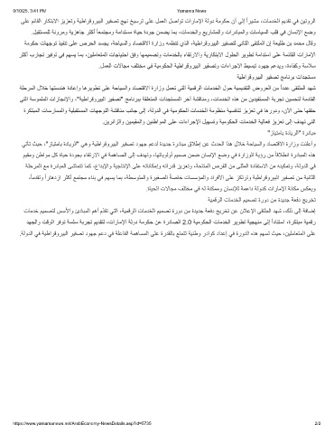 ﻰﻠﻋ مﺋﺎﻘﻟا رﺎﻛﺗﺑﻻا زﯾزﻌﺗو ﺔﯾطارﻗورﯾﺑﻟا رﯾﻔﺻﺗ ﺞﮭﻧ ﺦﯾﺳرﺗ ﻰﻠﻋ لﻣﻌﻟا لﺻاوﺗ تارﺎﻣﻹا ﺔﻟود ﺔﻣوﻛﺣ نأ ﻰﻟإ ًارﯾﺷﻣ ،تﺎﻣدﺧﻟا مﯾدﻘﺗ ﻲﻓ نﯾﺗورﻟا