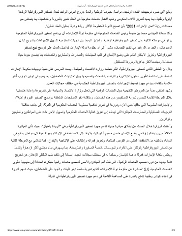 تارﺎﻣﻹا ﺔﻣوﻛﺣ تﺎﮭﺟوﺗ ذﯾﻔﻧﺗ ﻰﻠﻋ صرﺣﻟا دﺳﺟﯾ ،ﺔﺣﺎﯾﺳﻟاو دﺎﺻﺗﻗﻻا ةرازو ﮫﻣظﻧﺗ يذﻟا ،ﺔﯾطارﻗورﯾﺑﻟا رﯾﻔﺻﺗﻟ ﻲﻧﺎﺛﻟا ﻰﻘﺗﻠﻣﻟا نإ لﺎﻗو
