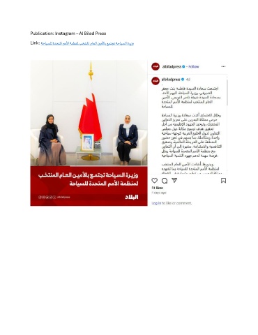 Publication: Instagram – Al Bilad Press Link: ةحايسلل ةدحتلما مملأا ةمظنلم بختنلما ماعلا نيملأاب عمتجت ةحايسلا ةريزو