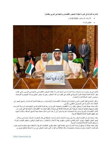 تدقُع يتلاو ،يبرعلا يعامتجلااو يداصتقلاا سلجملل 116 ـلا ةرودلا لامعأ يف تاراملإا ةلود تكراش / ماو /ربمتبس 3 يف ةرهاقلا
