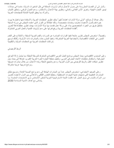 9/10/25, 3:08 PM ﻲﺑرﻌﻟا ﻲﻋﺎﻣﺗﺟﻻاو يدﺎﺻﺗﻗﻻا سﻠﺟﻣﻠﻟ 116 ةرودﻟا ﻲﻓ كرﺎﺷُﺗ تارﺎﻣﻹا