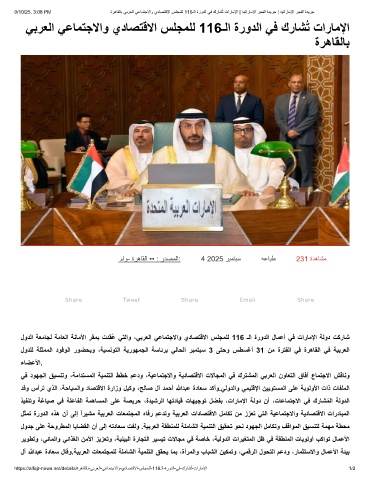 9/10/25, 3:08 PM ةرھﺎﻘﻟﺎﺑ ﻲﺑرﻌﻟا ﻲﻋﺎﻣﺗﺟﻻاو يدﺎﺻﺗﻗﻻا سﻠﺟﻣﻠﻟ 116ـﻟا ةرودﻟا ﻲﻓ كرﺎﺷُﺗ تارﺎﻣﻹا | ﮫﯾﺗارﺎﻣﻹا رﺟﻔﻟا ةدﯾرﺟ | ﮫﯾﺗارﺎﻣﻹا رﺟﻔﻟا ةدﯾرﺟ