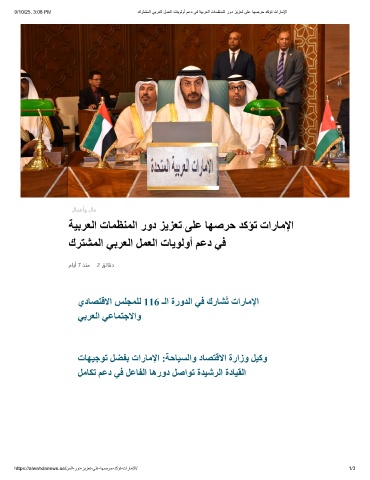 9/10/25, 3:08 PM كرﺗﺷﻣﻟا ﻲﺑرﻌﻟا لﻣﻌﻟا تﺎﯾوﻟوأ مﻋد ﻲﻓ ﺔﯾﺑرﻌﻟا تﺎﻣظﻧﻣﻟا رود زﯾزﻌﺗ ﻰﻠﻋ ﺎﮭﺻرﺣ دﻛؤﺗ تارﺎﻣﻹا