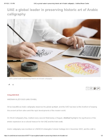 https://en.aletihad.ae/news/culture/4597711/uae-a-global-leader-in-preserving-historic-art-of-arabic-cal 1/3