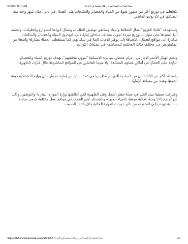 ﺮﺋﺎﺼﻌﻟاو هﺎﻴﻤﻟا ﻊﻳزﻮﺗ فﺪﻬﺑ ،"ﻢﻬﺸﻄﻋ يوﺮﻨﻟ" ﺔﻴﻧﺎﺴﻧإلا ﻪﺗردﺎﺒﻣ ،نﺎﻤﺠﻋ ﺰﻛﺮﻣ - ﻲﺗارﺎﻣإلا ﺮﻤﺣألا لالﻬﻟا ﻢﻈﻧو