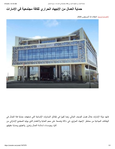 8/12/25, 10:10 AM نطوﻟا ةدﯾرﺟ › تارﺎﻣﻹا ﻲﻓ ﺔﯾﻌﻣﺗﺟﻣ ﺔﻓﺎﻘﺛ يرارﺣﻟا دﺎﮭﺟﻹا نﻣ لﺎﻣﻌﻟا ﺔﯾﺎﻣﺣ