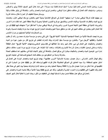 ﻲﻓ لﺎﻣﻌﻟا ﻰﻠﻋ ةدرﺎﺑﻟا رﺋﺎﺻﻌﻟاو هﺎﯾﻣﻟا ﻊﯾزوﺗ فدﮭﺑ ،"مﮭﺷطﻋ يورﻧﻟ" ﺔﯾﻧﺎﺳﻧﻹا ﮫﺗردﺎﺑﻣ ،نﺎﻣﺟﻋ زﻛرﻣ - ﻲﺗارﺎﻣﻹا رﻣﺣﻷا لﻼﮭﻟا مظﻧو