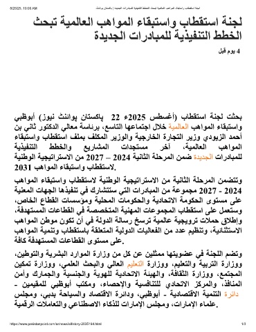 8/26/25, 10:06 AM ٹﻧﺋاوﺑ نﺎﺗﺳﮐﺎﺑ | ةدﯾدﺟﻟا تاردﺎﺑﻣﻠﻟ ﺔﯾذﯾﻔﻧﺗﻟا ططﺧﻟا ثﺣﺑﺗ ﺔﯾﻣﻟﺎﻌﻟا بھاوﻣﻟا ءﺎﻘﺑﺗﺳاو بﺎطﻘﺗﺳا ﺔﻧﺟﻟ