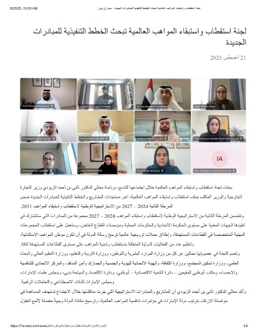 ﻦﻤﺿ ةﺪﯾﺪﺠﻟا تاردﺎﺒﻤﻠﻟ ﺔﯾﺬﯿﻔﻨﺘﻟا ﻂﻄﺨﻟاو ﻊﯾرﺎﺸﻤﻟا تاﺪﺠﺘﺴﻣ ﺮﺧآ ،ﺔﯿﻤﻟﺎﻌﻟا ﺐھاﻮﻤﻟا ءﺎﻘﺒﺘﺳاو بﺎﻄﻘﺘﺳا ﻒﻠﻤﺑ ﻒﻠﻜﻤﻟا ﺮﯾزﻮﻟاو ﺔﯿﺟرﺎﺨﻟا