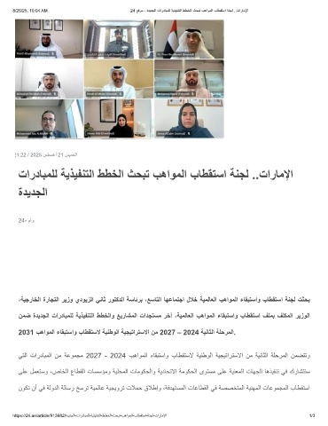 8/26/25, 10:04 AM 24 ﻊﻗوﻣ - ةدﯾدﺟﻟا تاردﺎﺑﻣﻠﻟ ﺔﯾذﯾﻔﻧﺗﻟا ططﺧﻟا ثﺣﺑﺗ بھاوﻣﻟا بﺎطﻘﺗﺳا ﺔﻧﺟﻟ ..تارﺎﻣﻹا