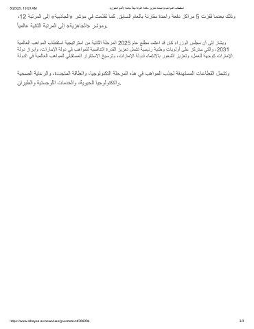 ﺔﻟود زارﺑإو ،تارﺎﻣﻹا ﺔﻟود ﻲﻓ بھاوﻣﻠﻟ ﺔﯾﺳﻓﺎﻧﺗﻟا ةردﻘﻟا زﯾزﻌﺗ لﻣﺷﺗ ﺔﯾﺳﯾﺋر ﺔﯾﻧطو تﺎﯾوﻟوأ ﻰﻠﻋ زﻛرﺗﺳ ﻲﺗﻟاو ،2031
