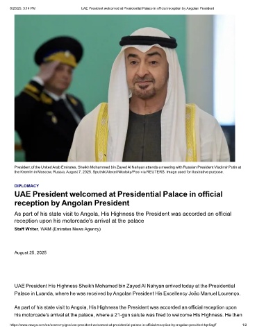 8/26/25, 3:14 PM UAE President welcomed at Presidential Palace in official reception by Angolan President