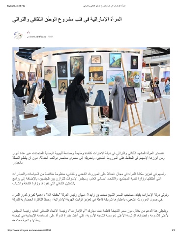 8/28/25, 3:38 PM ﻲﺛارﺗﻟاو ﻲﻓﺎﻘﺛﻟا نطوﻟا عورﺷﻣ بﻠﻗ ﻲﻓ ﺔﯾﺗارﺎﻣﻹا ةأرﻣﻟا