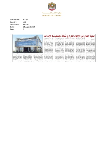 Publication: Al Fajr Country: UAE Circulation: 34,596 Date: 12 August 2025 Page: 2