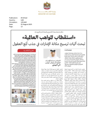 Publication: Al Etihad Country: UAE Circulation: 109,640 Date: 22 August 2025 Page: 13