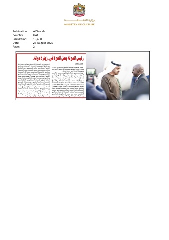 Publication: Al Wahda Country: UAE Circulation: 19,400 Date: 23 August 2025 Page: 2
