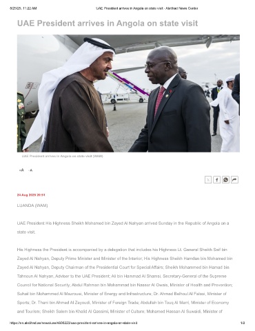 8/25/25, 11:22 AM UAE President arrives in Angola on state visit - Aletihad News Center