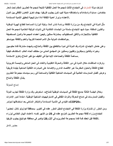 نﯾﯾﻣوﻛﺣ ةدﺎﻗ ﺔﻛرﺎﺷﻣ تدﮭﺷو «خﺎﻧﻣﻟاو ﺔﻓﺎﻘﺛﻟا نﯾﺑ ﻊطﺎﻘﺗﻟا» ةودﻧ ﻲﻓ ﺔﻟودﻟا دﻓو كرﺎﺷ ،عﺎﻣﺗﺟﻻا شﻣﺎھ ﻰﻠﻋو