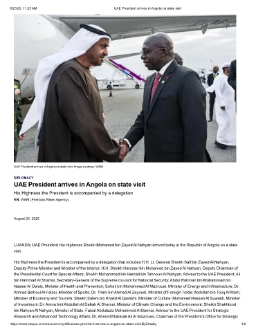 8/25/25, 11:23 AM UAE President arrives in Angola on state visit