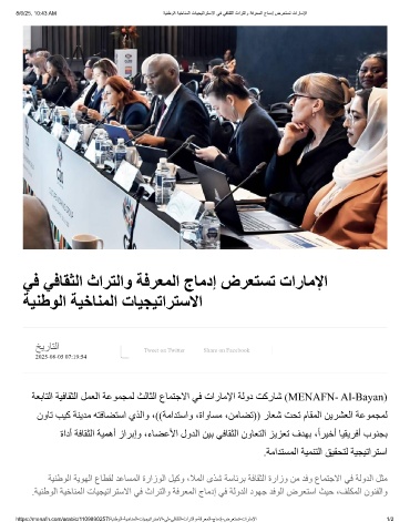 https://menafn.com/arabic/1109890257/ﺔﯾﻧطوﻟا-ﺔﯾﺧﺎﻧﻣﻟا-تﺎﯾﺟﯾﺗارﺗﺳﻻا-ﻲﻓ-ﻲﻓﺎﻘﺛﻟا-ثارﺗﻟاو-ﺔﻓرﻌﻣﻟا-جﺎﻣدإ-ضرﻌﺗﺳﺗ-تارﺎﻣﻹا 1/2