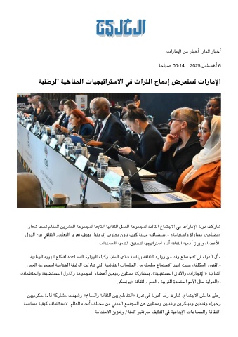 ﺔﻴﻨﻃﻮﻟا ﺔﻴﺧﺎﻨﻤﻟا تﺎﻴﺠﻴﺗاﺮﺘﺳﻻا ﻓ ثاﺮﺘﻟا جﺎﻣدإ ضﺮﻌﺘﺴﺗ تارﺎﻣﻹا