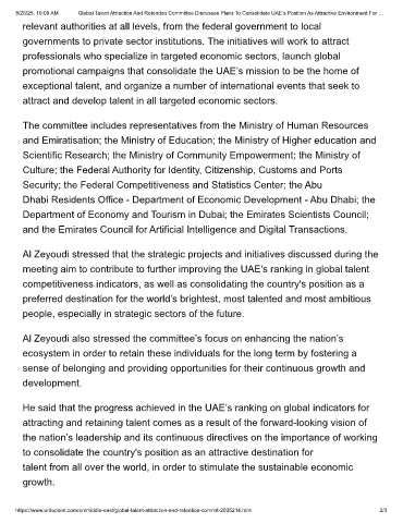 8/26/25, 10:09 AM Global Talent Attraction And Retention Committee Discusses Plans To Consolidate UAE’s Position As Attractive Environment For …
