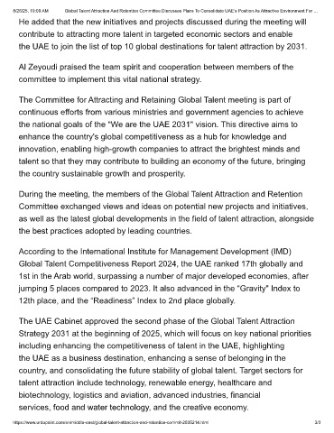 8/26/25, 10:09 AM Global Talent Attraction And Retention Committee Discusses Plans To Consolidate UAE’s Position As Attractive Environment For …