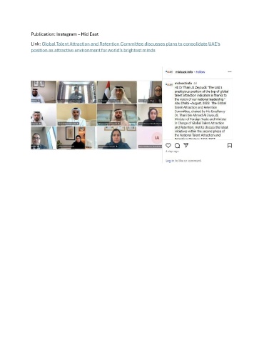 Publication: Instagram – Mid East Link: Global Talent Attraction and Retention Committee discusses plans to consolidate UAE’s position as attractive environment for world’s brightest minds