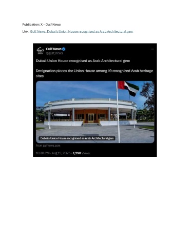 Publication: X – Gulf News Link: Gulf News: Dubai's Union House recognised as Arab Architectural gem