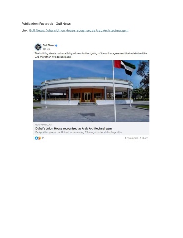 Publication: Facebook – Gulf News Link: Gulf News: Dubai's Union House recognised as Arab Architectural gem
