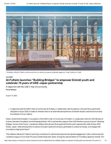 8/15/25, 1:05 PM Al-Futtaim launches “Building Bridges” to empower Emirati youth and celebrate 70 years of UAE–Japan partnership