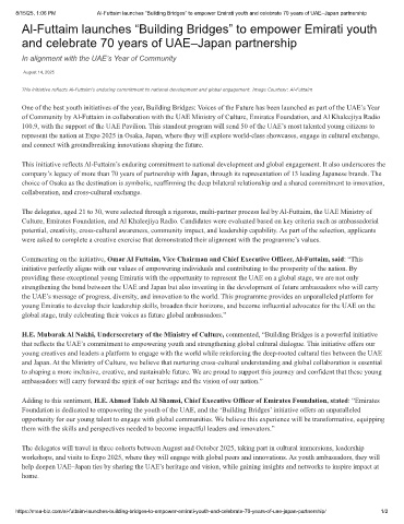 8/15/25, 1:06 PM Al-Futtaim launches “Building Bridges” to empower Emirati youth and celebrate 70 years of UAE–Japan partnership