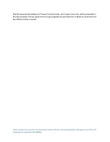 that the Asian Bodybuilding and Fitness Championship, set to begin tomorrow, will be presented in