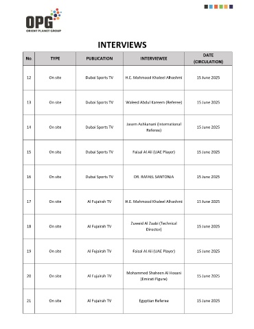 19 On site Al Fujairah TV Faisal Al Ali (UAE Player) 15 June 2025