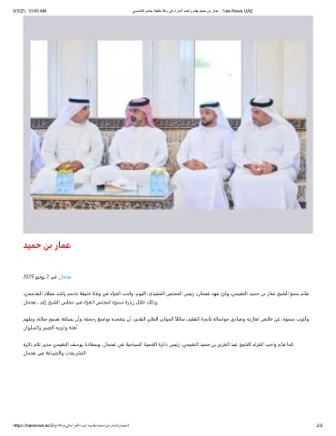 6/3/25, 10:49 AM ﻲﺳﻣﺎﺷﻟا مﺳﺎﺟ ﺔﻔﯾﻠﺧ ةﺎﻓو ﻲﻓ ءازﻌﻟا بﺟاو مدﻘﯾ دﯾﻣﺣ نﺑ رﺎﻣﻋ - Nas News UAE
