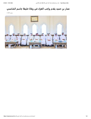 6/3/25, 10:49 AM ﻲﺳﻣﺎﺷﻟا مﺳﺎﺟ ﺔﻔﯾﻠﺧ ةﺎﻓو ﻲﻓ ءازﻌﻟا بﺟاو مدﻘﯾ دﯾﻣﺣ نﺑ رﺎﻣﻋ - Nas News UAE يسﻣﺎﺸﻟا ﻢﺳﺎﺟ ﺔﻔﻴﻠﺧ ةﺎﻓو ﻲﻓ ءاﺰﻌﻟا ﺐﺟاو مﺪﻘﻳ ﺪﻴﻤﺣ ﻦﺑ رﺎﻤﻋ 2 2025 ،ﻮﻴﻧﻮﻳ https://nasnews.ae/2-خ-ةﺎﻓو-ﻲﻓ-ءازﻌﻟا-بﺟاو-مدﻘﯾ-دﯾﻣﺣ-نﺑ-رﺎﻣﻋ/نﺎﻣﺟﻋ/ 1/2
