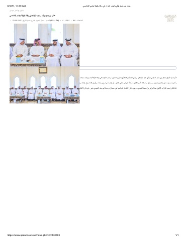 .نﺎﻤﺠﻋ ـ ﺪﯾاز ﺦﯿﺸﻟا ﺲﻠﺠﻣ ﻲﻓ ءاﺰﻌﻟا ﺲﻠﺠﻤﻟ ه ّ ﻮﻤﺳ ةرﺎﯾز لﻼﺧ ﻚﻟذو ،ﻲﺴﻣﺎﺸﻟا دﻼﺠﻣ ﺪﺷار ﻢﺳﺎﺟ ﺔﻔﯿﻠﺧ ةﺎﻓو ﻲﻓ ءاﺰﻌﻟا ﺐﺟاو ،ﻦﯿﻨﺛﻻا مﻮﯿﻟا ،يﺬﯿﻔﻨﺘﻟا ﺲﻠﺠﻤﻟا ﺲﯿﺋر ،نﺎﻤﺠﻋ ﺪﮭﻋ ّ ﻲﻟو ،ﻲﻤﯿﻌﻨﻟا ﺪﯿﻤﺣ ﻦﺑ رﺎّﻤﻋ ﺦﯿﺸﻟا ّ ﻮﻤﺳ مّﺪﻗ