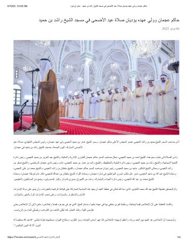 ﺪﯿﻤﺣ ﻦﺑ ﺪﺷار ﺦﯿﺸﻟا ﺪﺠﺴﻣ ﻲﻓ ﻰﺤﺿﻷا ﺪﯿﻋ ةﻼﺻ نﺎﯾدﺆﯾ هﺪﮭﻋ ﻲﻟوو نﺎﻤﺠﻋ ﻢﻛﺎﺣ