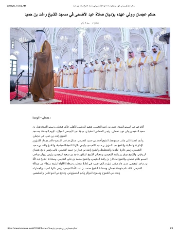 6/10/25, 10:06 AM دﯾﻣﺣ نﺑ دﺷار ﺦﯾﺷﻟا دﺟﺳﻣ ﻲﻓ ﻰﺣﺿﻷا دﯾﻋ ةﻼﺻ نﺎﯾدؤﯾ هدﮭﻋ ﻲﻟوو نﺎﻣﺟﻋ مﻛﺎﺣ