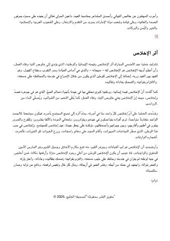 ،ﻞﻤﻌﻟا ءﺎﻘﻧو ﺔﻴﻨﻟا صﻮﻠﺧ ﻟإ يدﺆﻳ يﺬﻟا ،ﺔﻴﻨﻃﻮﻟاو ﺔﻴﻧﺎﻤﻳﻹا ﻪﺘﻤﻴﻗو صﻼﺧﻹا ﺮﺛأ كرﺎﺒﻤﻟا ﺤﺿﻷا ﺪﻴﻋ ﺔﺒﻄﺧ ﺖﻟوﺎﻨﺗ