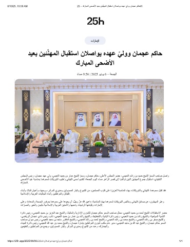6/10/25, 10:59 AM 25 – كرﺎﺑﻣﻟا ﻰﺣﺿﻷا دﯾﻌﺑ نﯾﺋّﻧﮭﻣﻟا لﺎﺑﻘﺗﺳا نﻼﺻاوﯾ هدﮭﻋ ّ ﻲﻟوو نﺎﻣﺟﻋ مﻛﺎﺣH