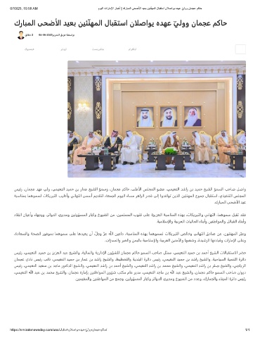 6/10/25, 10:58 AM موﯾﻟا تارﺎﻣﻹا رﺎﺑﺧأ | كرﺎﺑﻣﻟا ﻰﺣﺿﻷا دﯾﻌﺑ نﯾﺋّﻧﮭﻣﻟا لﺎﺑﻘﺗﺳا نﻼﺻاوﯾ هدﮭﻋ ّ ﻲﻟوو نﺎﻣﺟﻋ مﻛﺎﺣ