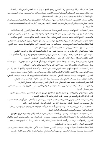 ﻦﻴﺌﻨﻬﻤﻟا ،هﻮﻤﺳ ﺮﺼﻘﺑ ،ﻦﻳﻮﻴﻘﻟا مأ ﻢﻛﺎﺣ ﻠﻋﻷا ﺲﻠﺠﻤﻟا ﻮﻀﻋ ﻼﻌﻤﻟا ﺪﺷار ﻦﺑ دﻮﻌﺳ ﺦﻴﺸﻟا ﻮﻤﺴﻟا ﺐﺣﺎﺻ ﻞﺒﻘﺘﺳاو